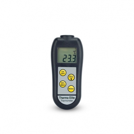 σε κλίμακα απο -99,9 έως 1372°C με ανάλυση 0,1°C ή 1°C. Το Therma Elite διαθέτει μια μεγάλη, ευανάγνωστη οθόνη LCD με ένδειξη "Err" και χαμηλής μπαταρίας και κλείνει αυτόματα μετά απο δέκα λεπτά.